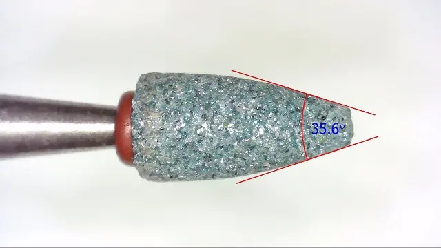 ドリルやカッターの両側に沿って直線を引くことにより、やがて交わる角度を計測