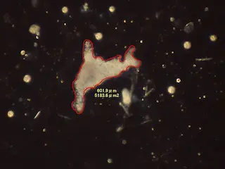 観察体の周囲に沿ってなぞっていきます。なぞり終えると、なぞった距離=周囲長と面積が計測。