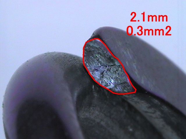 工具の欠けた部位に沿ってなぞることにより、欠けた面積を計測